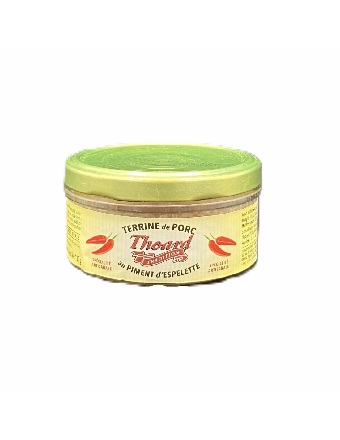 La charcuterie de Thoard vous propose une terrine de porc artisanale relevée au piment d’Espelette, pour une alliance parfaite entre douceur du terroir provençal et caractère basque.
