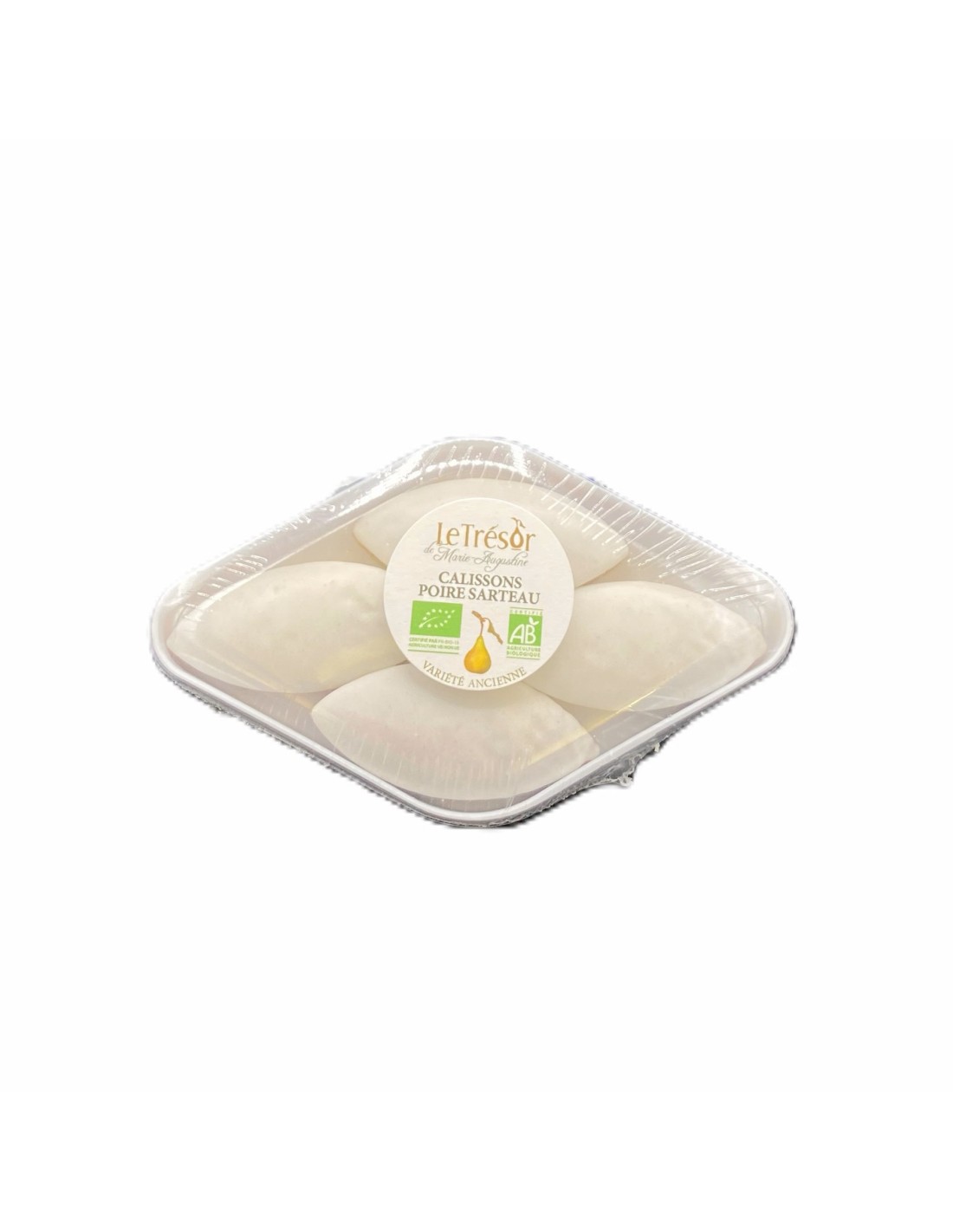 Découvrez ces calissons revisités avec une touche gourmande et originale : la poire ! Fondants et délicatement sucrés, ils allient la douceur de l’amande au goût fruité et parfumé de ce délicieux fruit. Une confiserie raffinée qui séduira les amateurs de saveurs authentiques.